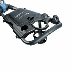 Motocaddy CUBE features a simple two-step folding mechanism which easily reduces the size of the trolley to fit into most car boots, An ergonomic handle with adjustable height control features an integrated storage system for tees/balls etc.